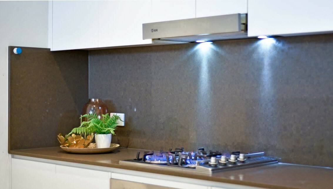 - Kitchen appliances including a gas cooktop, dishwasher, gourmet stone benchtop & stone splashbacks