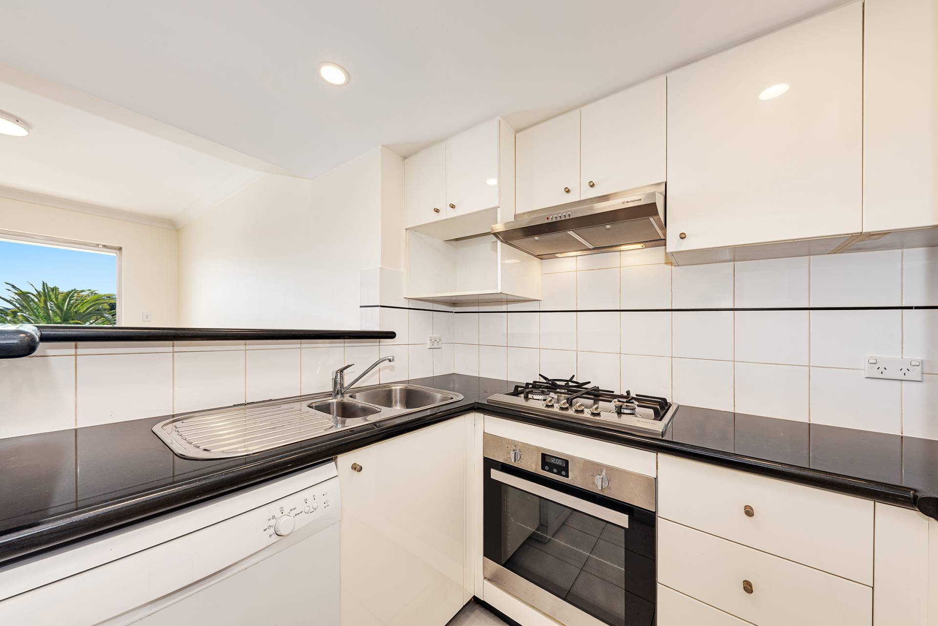 Architect-designed North-facing 2 level apartment with leafy outlooks, sun-drenched Northern aspect with large balcony off the living room and bedroom, generous living, and a bedroom upstairs with a single security undercover car space all within a manicured garden setting in the Meridian complex/estate.
