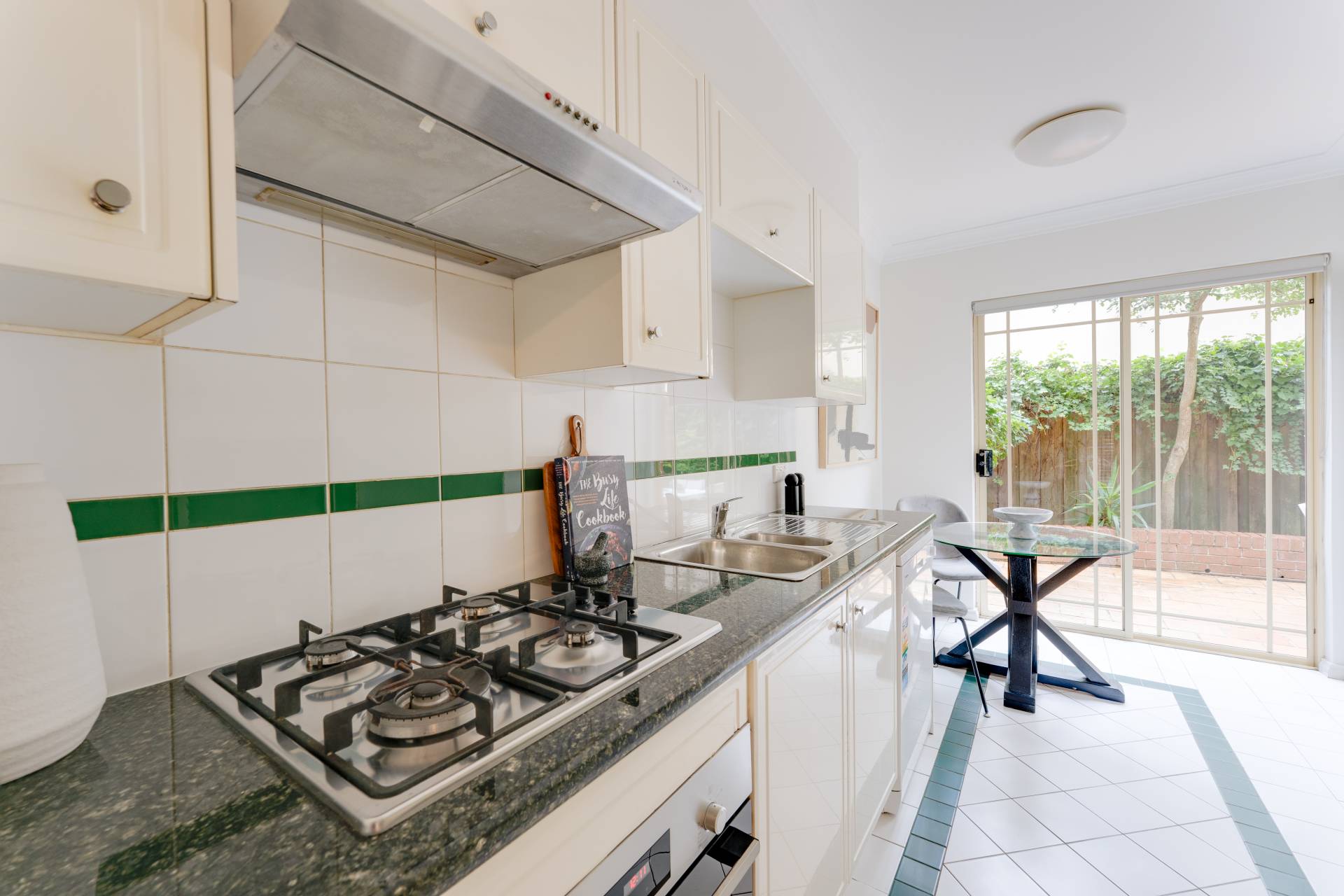 *Gallery-style eat-in kitchen with gas cooking, seamlessly connecting to the expansive dining area and leafy terrace.