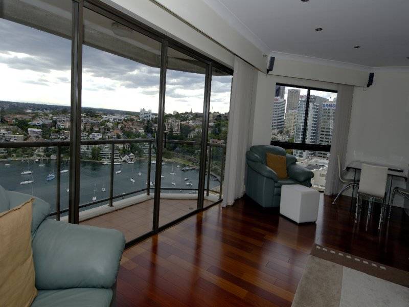 Exceptional Harbourside Apartment Gracing Sydney with the Views that the "World Comes To See!" with expansive 180° degree views of main harbour and Lavender Bay, 108m² of unsurpassed luxury, Two double bedrooms all with views to the Harbour, Modernkitchen with granite benchtops & Miele appliances, two marble bathrooms. Spacious 21m² security carspace.