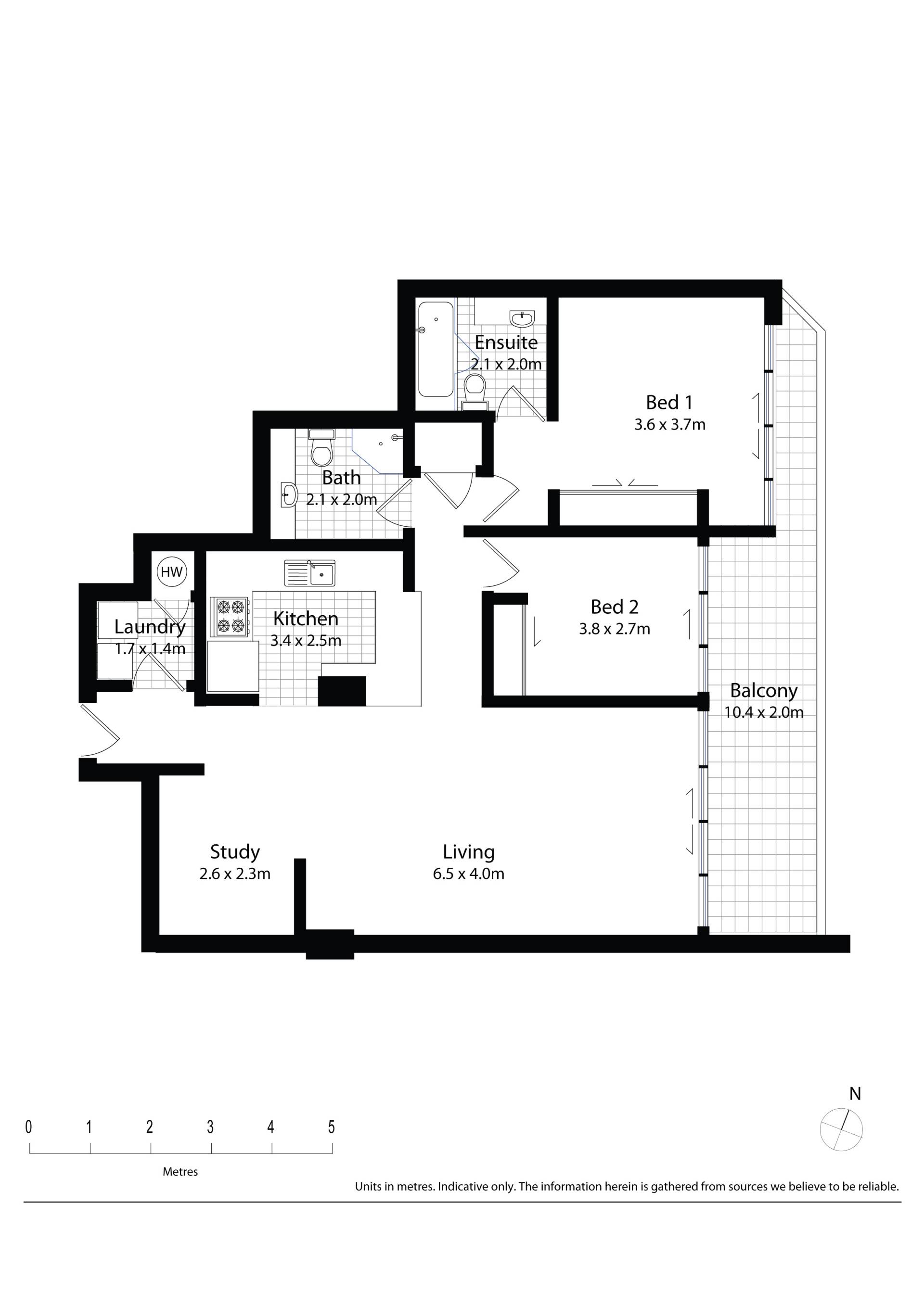 Features 2 bedrooms plus study, timber floors, wrap around balcony, modern designer kitchen with granite bench top and gas fittings.